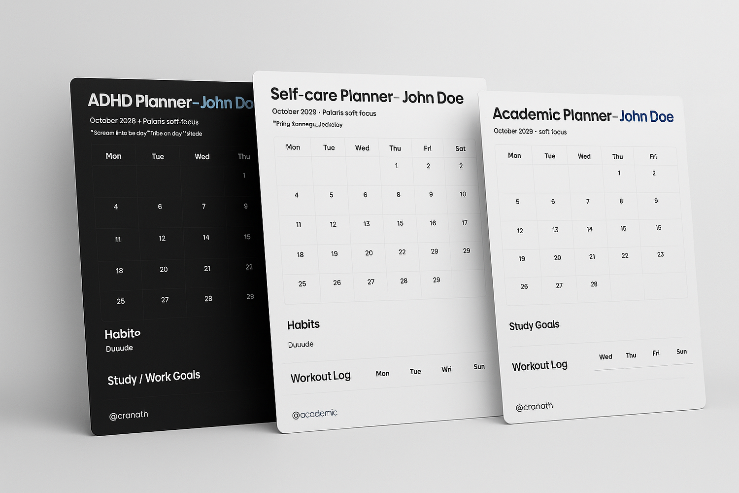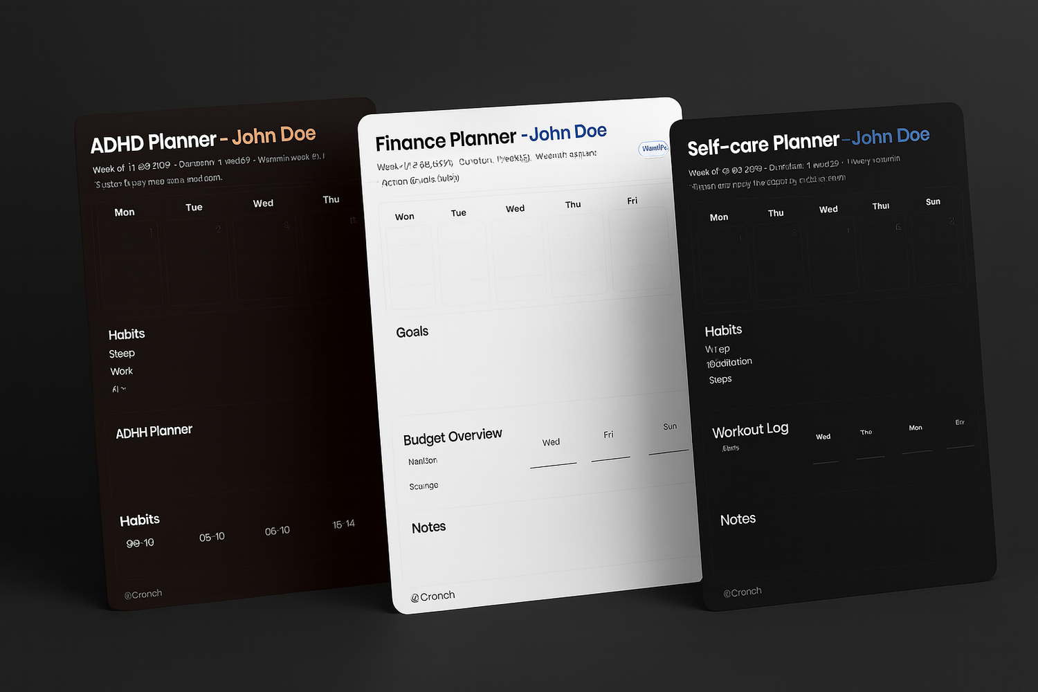 Cronah builds a planner around you. Your goals, your habits, your name — all baked into a clean, custom layout that keeps you consistent.